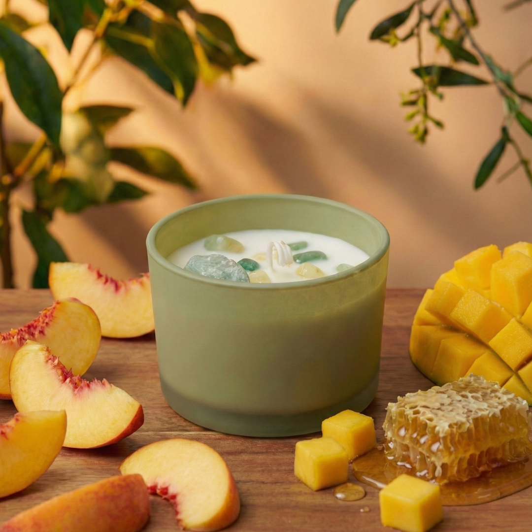 Peachy Melody Crystal Infused Candle: A Symphony of Sweet Serenity
